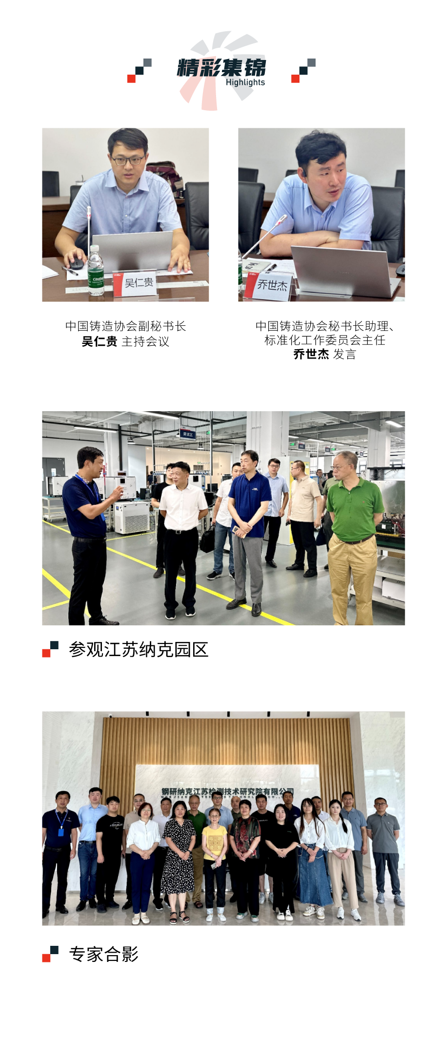 钢研纳克作为该项团标的第一起草单位,承办本次会议。钢研纳克董事长杨植岗出席欢迎仪式。江苏纳克副总经理于兆斌陪同各位专家参观了江苏纳克产业园区。